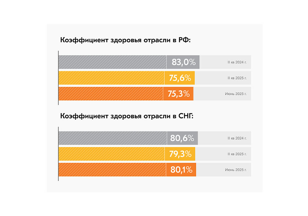 Данные экспертов EVRAZ STEEL свидетельствует о продолжающемся третий квартал подряд снижении активности в отрасли стального строительства. Такие результаты показывает расчёт коэффициента здоровья отрасли (КЗО) за второй квартал 2025 года. Если в четвёртом квартале 2024 года КЗО составлял 80,9%, а в первом квартале 2025 года — 79,1%, то во втором квартале нынешнего года показатель составил уже 75,6%, причём в июне опустился до 75,3%.