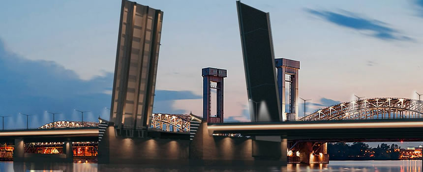 Разводной мост станет центральным элементом новой транспортной развязки в Невском районе Санкт-Петербурга. Объект возведут в рамках 4.1 этапа Широтной магистрали скоростного движения.