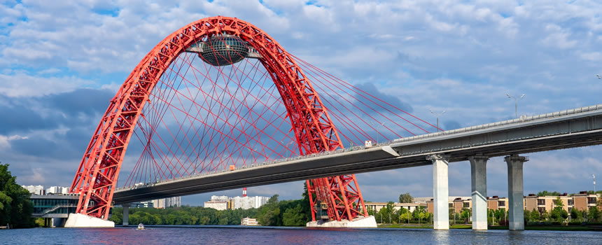 Первым таким объектом стал Живописный мост. Его название говорит само за себя. Технология вантового строительства помогла построить большой пролёт для прохождения судов и минимально травмировать природу на берегах реки.