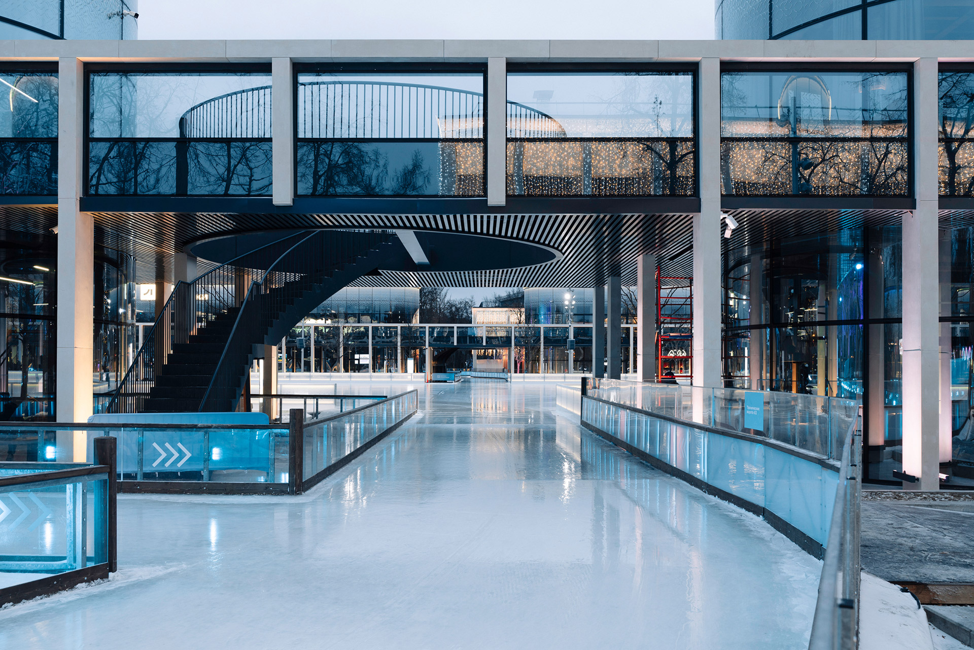 В парковых пространствах металл мы применяем очень часто, так как там актуальны быстровозводимые конструкции на болтовых соединениях, которые можно легко собрать и при необходимости разобрать. Скорость реализации проектных решений — важнейший фактор городских парковых проектов. Так, мы начали проектировать павильоны центральной площади Лужников в феврале 2025 года, а в декабре для посетителей уже открылся каток. В марте его конструкции разбирают, и в этом месте образуется площадь с фонтаном.